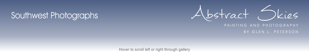 Photographs were made during hiking and camping trips taken in the summer months, especially when monsoon clouds and rain filled the vast Southwestern sky in a daily cyclical pattern - abstract skies. They served as inspiration for my paintings as well as offered specific imagery with which to compose complete works of art.